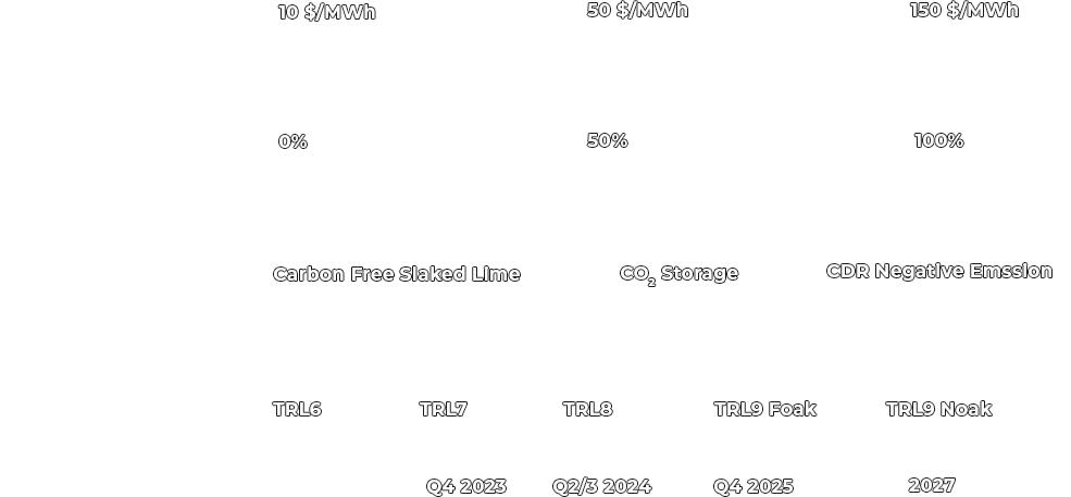 La metà della calce spenta decarbonizzata viene utilizzata per stoccare la CO₂ proveniente da fonti esterne in forma di bicarbonati di calcio. Il bicarbonato di calcio (Ca(HCO₃)₂) prodotto arricchisce l’acqua di mare con le sue proprietà alcaline.