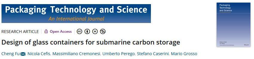 Fu C., Cefis N., Cremonesi M., Perego U., Caserini S., Grosso M. (2022) Design of glass containers for submarine carbon storage. Packaging Technology and Science, Vol. 35, 3 259-271. doi.org/10.1002/pts.2624