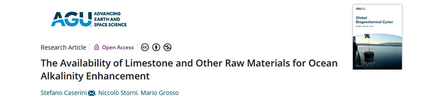 Caserini S., Storni N., Grosso M. (2022). The Availability of Limestone and Other Raw Materials for Ocean Alkalinity Enhancement. AGU Advanced Earth and Space science. Vol.36, Issue5 doi.org/10.1029/2021GB007246