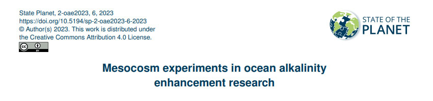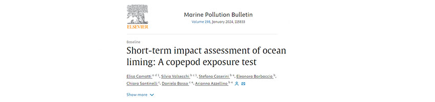 Elisa Camatti, Silvia Valsecchi, Stefano Caserini, Eleonora Barbaccia, Chiara Santinelli, Daniela Basso, Arianna Azzellino. Short-term impact assessment of ocean liming: A copepod exposure test.